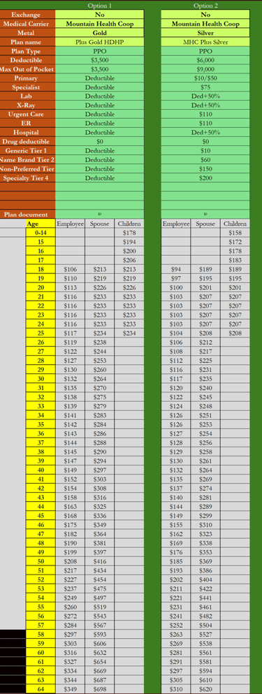 Rates are listed as bi-weekly. Children under 19 are priced where you only pay for the oldest 3, the rest would be no charge.